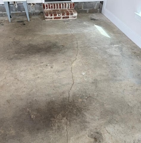 The one above is the raw concrete we started with—nothing special, stained dirty and yeah, those cracks were no joke. The one below after coating—night and day difference!